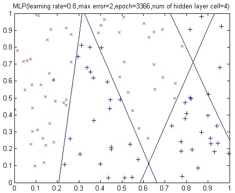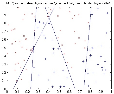 This is exactly what neural networks do. By using a three-layer neural network, the hidden layer is responsible for drawing these imaginary lines and the output layer tells us the rules which we can separate the data based on.